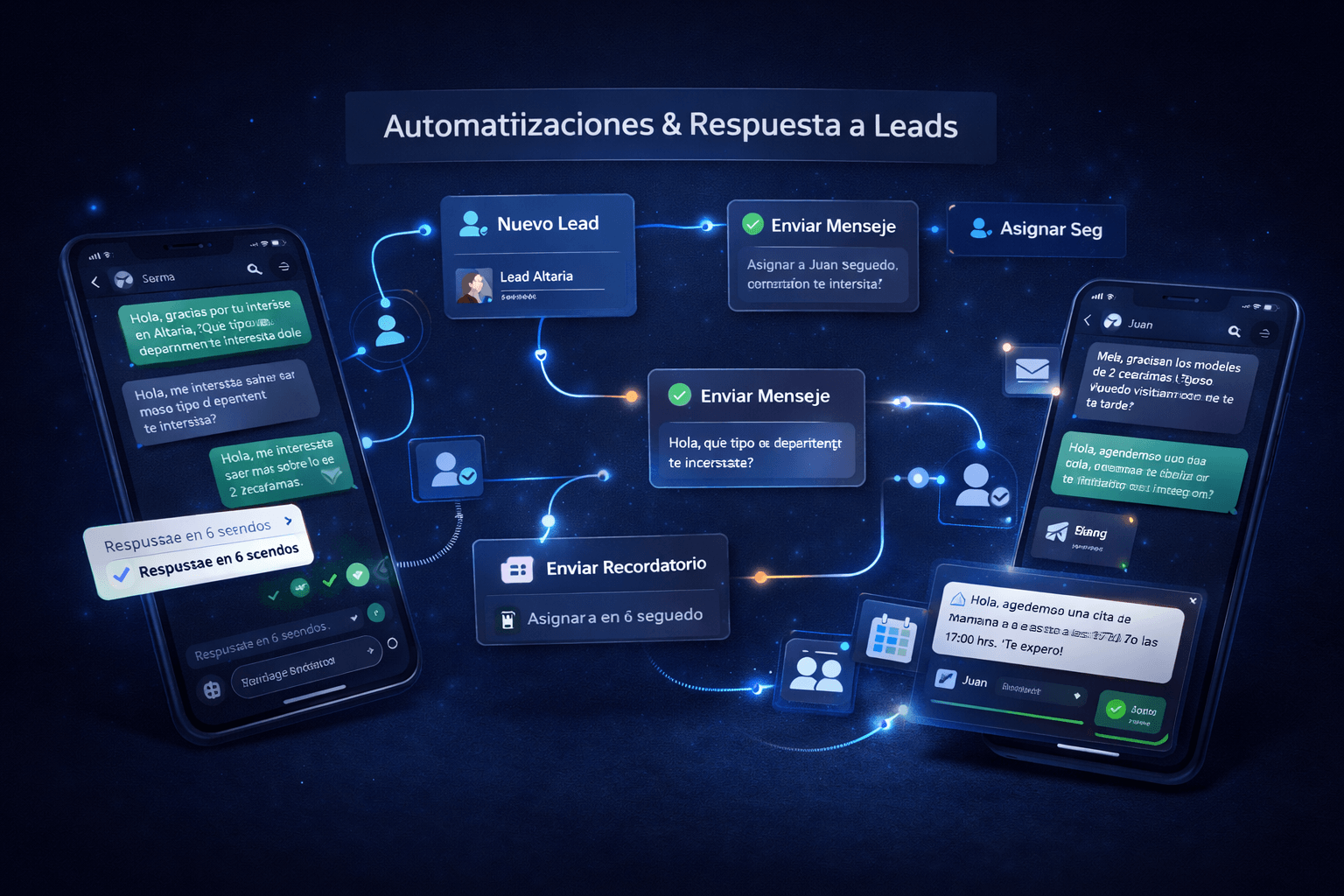 Eso incluye una estrategia de comunicación adaptada a la etapa del desarrollo, campañas y creativos diseñados para atraer la demanda correcta, páginas enfocadas en conversión, respuesta inmediata a leads, appointment setting, seguimiento comercial, dashboards de control y automatizaciones que mantienen el sistema en movimiento.